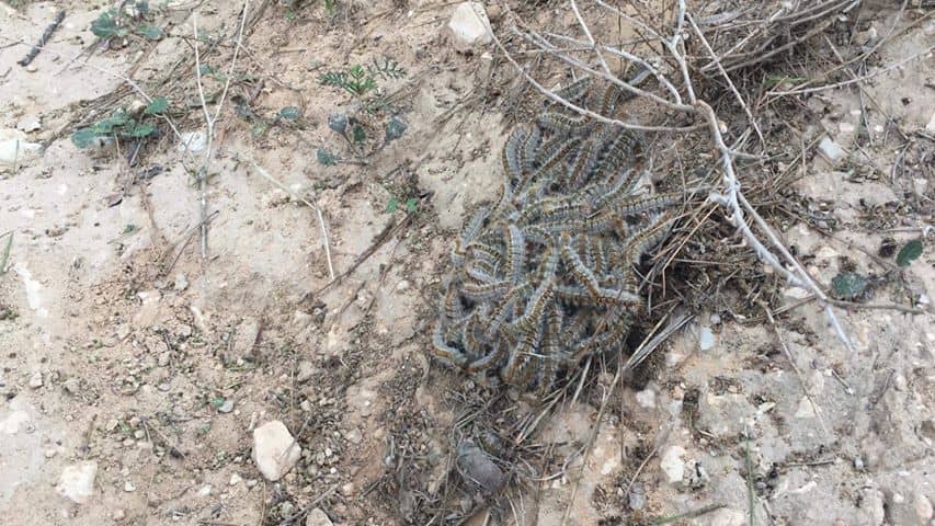 Vecinos de Villena han denunciado el abandono de la pinada del paraje de Las Cruces. La falta de mantenimiento ha provocado que se hayan secado muchas especies, así como la proliferación de procesionaria. En la mañana de ayer domingo, varios vecinos que se trasladaron a esta zona verde de la ciudad para dar un paseo, comprobaron como estos gusanos proliferan por todo el paraje y y piden al Ayuntamiento que actúe para eliminar esta plaga “que puede provocar graves problemas tanto humanos como animales, incluso causar la muerte a los animales”, señalan.