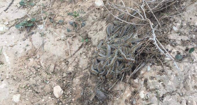Vecinos de Villena han denunciado el abandono de la pinada del paraje de Las Cruces. La falta de mantenimiento ha provocado que se hayan secado muchas especies, así como la proliferación de procesionaria. En la mañana de ayer domingo, varios vecinos que se trasladaron a esta zona verde de la ciudad para dar un paseo, comprobaron como estos gusanos proliferan por todo el paraje y y piden al Ayuntamiento que actúe para eliminar esta plaga “que puede provocar graves problemas tanto humanos como animales, incluso causar la muerte a los animales”, señalan.