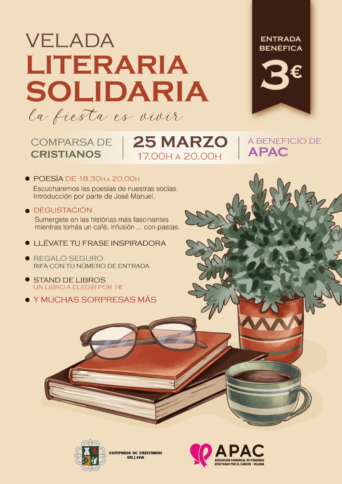 La Comparsa de Cristianos colabora con APAC (asociación personas afectadas por el cáncer), con esta velada literaria, el próximo 25 de marzo, sábado, en la sede de nuestra comparsa, plagada de sorpresas y regalos.