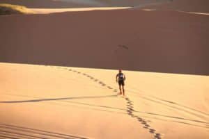 Vicente Juan García que salía con el segundo grupo, inicialmente decidía tomarse la etapa con calma, administrando su ventaja de más de una hora de sobre el segundo, hasta que aproximadamente en el kilómetro 65, en una zona de dunas con mucha visibilidad, veía como se le acercaba a gran velocidad el Belga Sleuyter, por lo que decidía cambiar de ritmo para mantener la distancia. Justo en ese momento, Vicente veía con sorpresa cómo la batería de su pulsómetro se agotaba, de modo que perdía el control del tiempo y de las pulsaciones, finalizando la etapa un poco más rápido de lo que él en un principio se había propuesto.