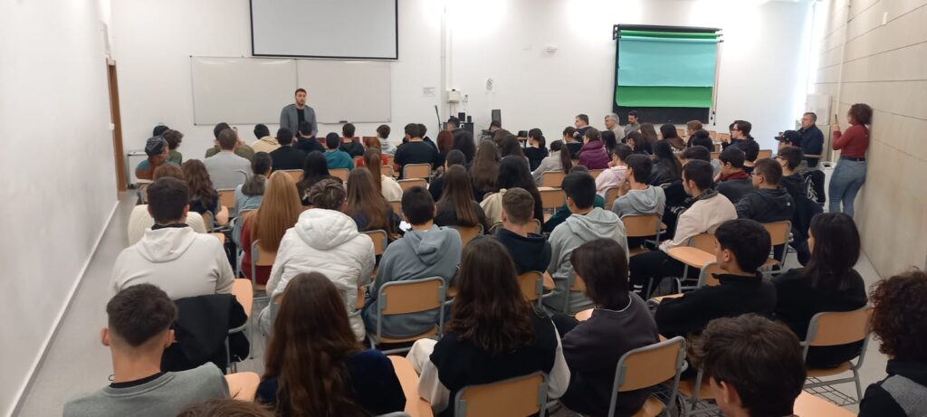 80 alumnos del IES Las Fuentes de 3º, 4º de la ESO y 1º de Bachillerato han asistido esta mañana a una charla impartida por Victor Gutiérrez que además de ser activista LGTBI es jugador profesional de water polo, miembro de la selección española y el primer deportista de élite que hizo pública su homosexualidad.