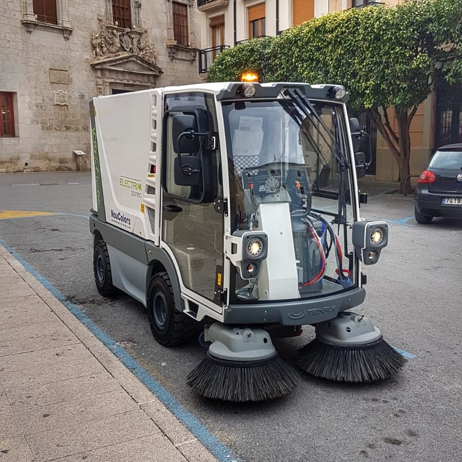 La nueva barredora eléctrica de la brigada de Limpieza Viaria en Villena tiene una capacidad de 2 m3 y está accionada por un motor eléctrico de corriente alterna. Dispone de motores eléctricos en las ruedas traseras y distribución eléctrica en las 4 ruedas.