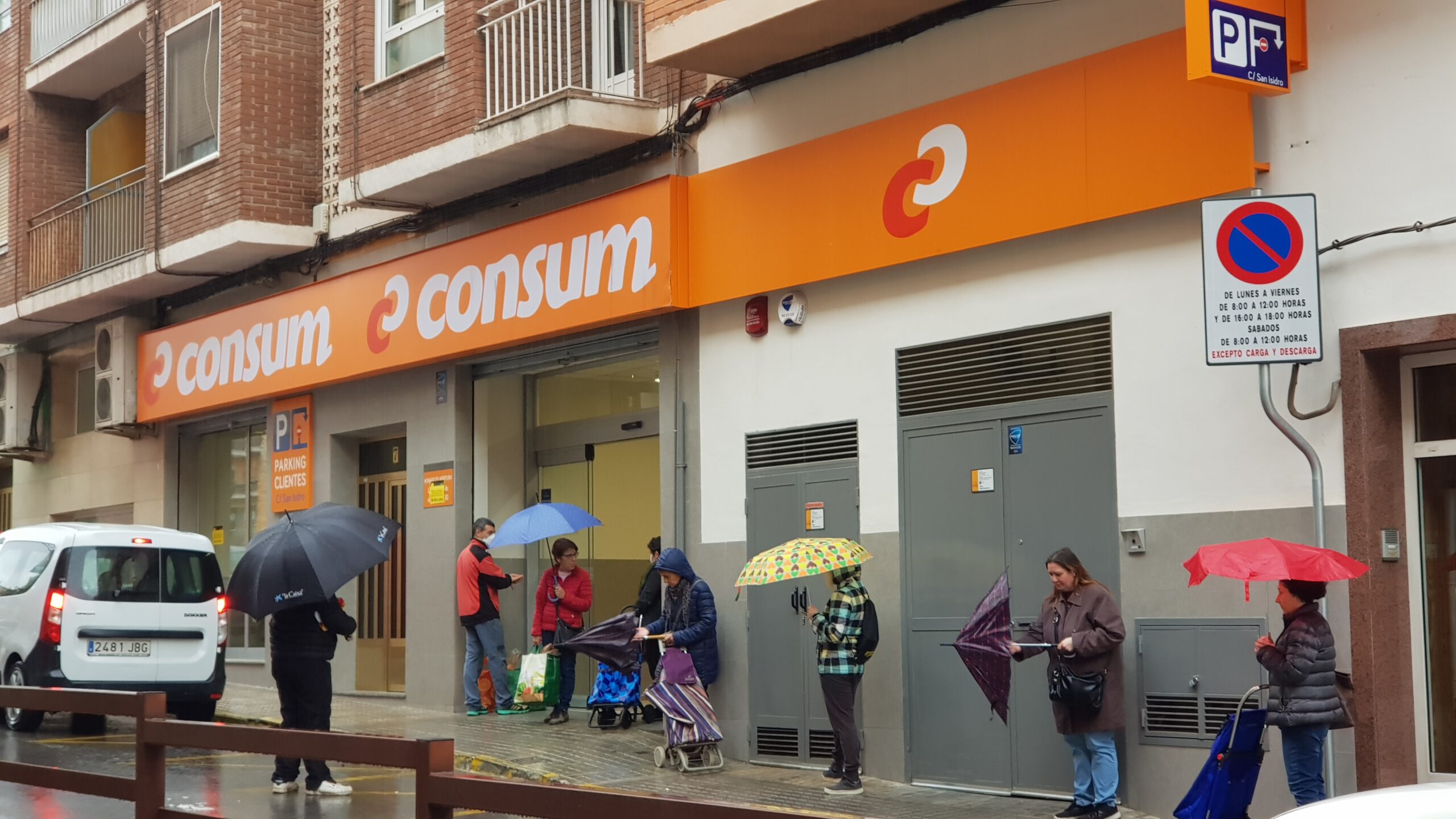 Villena afronta el primer día laborable tras la declaración del estado de alarma por el COVID19 con cierta normalidad. Las medidas instauradas por los supermercados para evitar que los clientes abarrotaran las superficies alimentarias han provocado colas en algunas de ellas. Los vecinos esperaban estoicamente en las puertas, muchos de ellos con mascarillas en los rostros, a que les tocase el turno. Además, se han tenido que guarecer de la lluvia que ha caído con intensidad al filo de las 12 del mediodía. En muchos de estos establecimientos se ha duplicado la seguridad para evitar que los clientes entrasen sin guardar la medidas sanitarias implantadas.