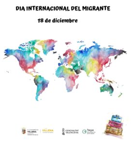 Desde la concejalía de Migraciones quieren invitar a la población de Villena a conmemorar día 18 de diciembre como un día de encuentro intercultural, donde la inclusión sea el punto de partida de una sociedad abierta y multicultural. En Villena convivimos personas de 77 nacionalidades distintas, incluyendo la española.