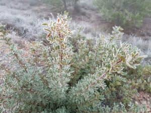 Los villeneros que se hayan lanzado hoy a la carretera se habrán encontrado con que la mayor parte de los campos del termino municipal se encontraban completamente blancos sin haber nevado. A las 8,19 de la mañana de hoy la estación meteorológica del Camino de San Juan registraba la temperatura mínima de -5.9 grados centígrados mientras que en la finca de Los Cristóbalicos el termómetro marcaba tres grados bajo cero. La máxima se era de 0.2 grados a las doce de noche.