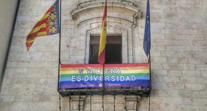 Desde el M.I. Ayuntamiento de Villena se ha aprobado el apoyo al Día del Orgullo LGTBI que se conmemora hoy, 28 de junio, a nivel mundial. Para ello se ha colgado del Balcón del Ayuntamiento una bandera con los colores representativos del Arco Iris en la que se puede leer el lema “Villena es Diversidad”.