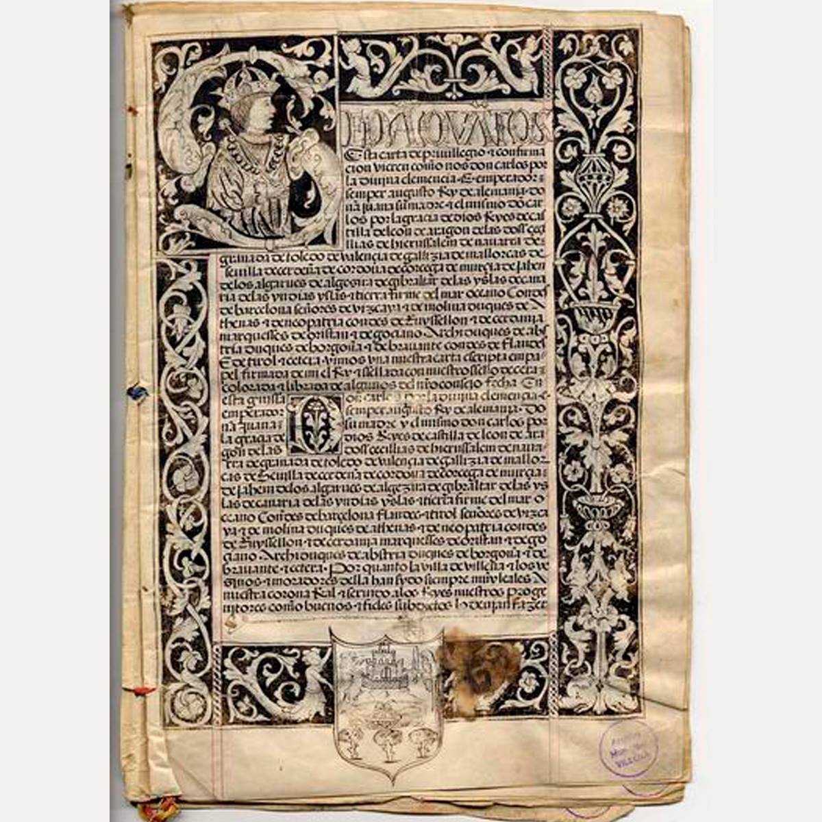 El 25 de febrero de 1525 el Emperador Carlos V la concedió a la Ciudad de Villena el Título de Ciudad por su participación en la Guerra de las Germanías y el apoyo que le dio a sus abuelos los Reyes Católicos en la Guerra del Marquesado en 1476 y en la toma de Granada en 1492.