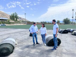 El alcalde de Villena, Fulgencio Cerdán, y la concejala de Deportes, Maite Gandía, han anunciado el inicio de las obras de renovación del césped artificial que el proyecto de renovación del césped artificial del campo Luiche, una actuación planificada en la anterior legislatura que ha comenzado a desarrollarse esta mañana, una actuación valorada en más 200.000 euros que financia al 100% la Diputación Provincial de Alicante.