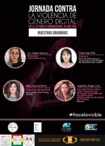 Junto a Laserna, participarán en la conferencia – que será en abierto para Europa y Latinoamérica – la profesora Cielito Saravia, de la Fundación InternetBolivia.org; Claire Lee, del Departamento de Criminología y Justicia de la Universidad de Massachusset Lowell; y Jaqueline Ángel Juan, jueza de Control, Juicio Oral y Ejecución de Sentencia especializada en justicia para adolescentes en el Estado de Chiapas (México).
