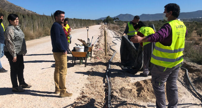 Las concejalías de Medio Ambiente y Parques y Jardines, en colaboración con el personal del taller de empleo del Proyecto Et Formen, están desarrollando la adecuación del vial ecológico por el antiguo trazado del tren Yecla, Villena y Alcoy, el denominado Chicharra, desde el tramo que parte de la zona del Polideportivo Municipal en paralelo a la carretera de Biar. La actuación permitirá disponer de una zona verde de unos 650 metros de longitud y se pretende potenciar con la instalación de mobiliario urbano y nueva vegetación en su recorrido, según han explicado hoy los ediles Francisco Iniesta y Paula García.