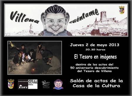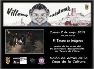 Comenzamos el 2 de mayo a las 20.30 horas con un especial… “EL TESORO EN IMÁGENES” dentro de los actos del 50 aniversario del descubrimiento del Tesoro. Estarán como invitados de lujo los cuatro supervivientes de aquel día 1 de diciembre de 1963, Pedro y Enrique Domenech, Miguel Flor y Martín Martínez junto a Laura Hernández directora del Museo y el equipo habitual de Villena Cuéntame, Santi, Chimo y Ernesto que nos contarán y contestarán a todas las preguntas.