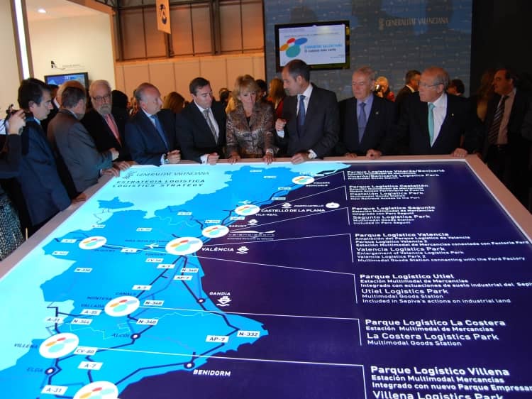 El presidente de la Generalitat Valenciana, Francisco Camps, ha presentado esta mañana en la primera edición de la feria “Logitrans” que está teniendo lugar en el recinto ferial de Madrid (IFEMA), la red de parques logísticos de la Comunidad Valenciana, conformados por ocho nodos logísticos entre los que destaca el que se desarrollará en Villena.