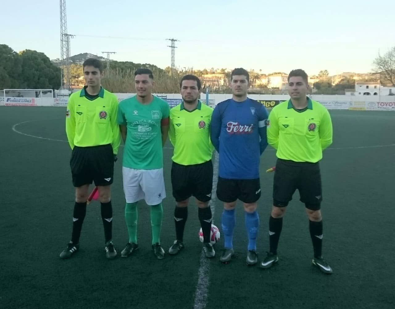 El colegiado enseñó cartulinas amarillas a Vicente, Mateo, Adrián y Jordi.