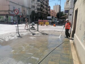 Villena emplea un nuevo sistema de limpieza a vapor  en la avenida Constitución y la muralla