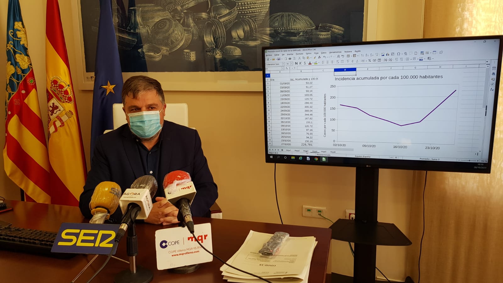 Por otro lado, Cerdán ha subrayado que, en la reunión de Seguridad mantenida ayer, se informó de que tanto la Policía Local como la Guardia Civil ya han impuesto multas por el incumplimiento de la normativa vigente. Asimismo ha recordado que “lo que hace unos días era una recomendación hoy es una norma de obligado cumplimiento” y con esto, se refirió a la utilización de los locales por más de seis personas a la vez y “a partir de ahora se puede sancionar”, se ha apostillado por parte de la primera autoridad.