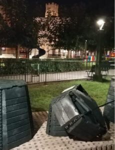 Hace una semana se colocaron las compostadoras en cuatro zonas de Villena; la plaza El Rollo, la pinada de Las Virtudes, en la plaza Martínez Olivencia y en la urbanización de las Fuentes. En dos de estas zonas, parte de las mismas presentaban destrozos, en solo un día.