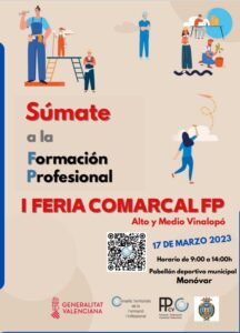 El Ayuntamiento de Villena participa en la I Feria Comarcal de Formación Profesional que se celebrará el próximo 17 de marzo en el Pabellón Deportivo de Monóvar y que pretende convertirse en un foro público entre los colectivos interesados en la oferta formativa que ofrecen los diferentes centros de los municipios del Medio y el Alto Vinalopó.