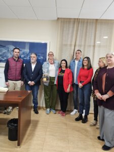 El alcalde de Villena, Fulgencio Cerdán, y parte de la Corporación Municipal, han recibido hoy en el Ayuntamiento a la exjugadora de baloncesto Amaya Valdemoro.