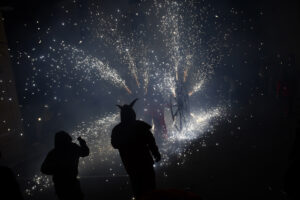 La raíz de los Correfocs viene del culto al fuego de la época medieval, se desarrolla normalmente por la noche, donde los demonios recorren las calles, derrochando fuego y fantasía para introducir al público en un ambiente infernal a través de sus bailes y su alegría.