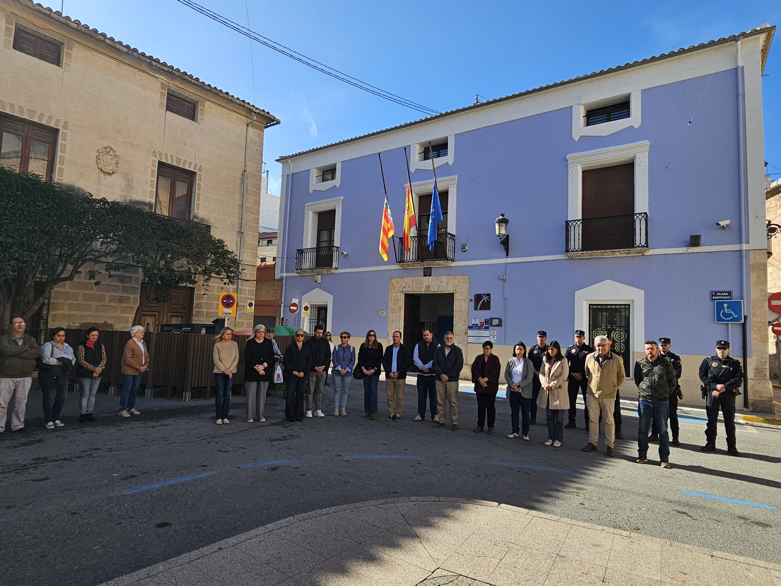 Vecinos, agentes de la Policía Local, concejales en el Ayuntamiento de Villena y la diputada autonómica, Mari Carmen Martínez han guardado un minuto de silencio en memoria de las 229 personas fallecidas hace un año en la Comunidad Valenciana como consecuencia de una DANA (Depresión Aislada en Niveles Altos) , que provocó graves inundaciones y dejó a cientos de personas sin hogar.