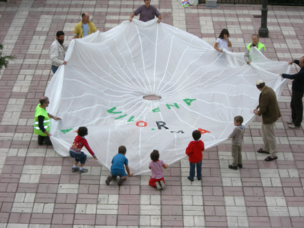 Los juegos con paracaídas realizados en Villena se unen a la fiesta por el cambio a energías renovables en la puerta de Brandenburgo en Berlín, o a la plantación de nogales para combatir la erosión del suelo en Moldavia.. Son distintos eventos a través de Europa que envían un mismo mensaje común y claro: los ciudadanos están trabajando alrededor de soluciones climáticas y así deberían hacer los políticos también. La mejora de la calidad de vida en todo el mundo, la paz y la justicia dependen de la lucha contra el cambio climático.