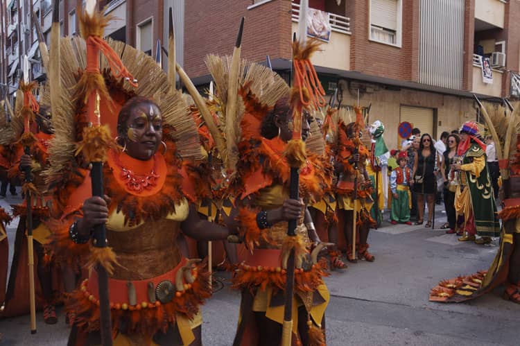 La marcha mora inundó cada rincón de la ciudad al paso de las huestes de la comparsa de Moros Realistas, seguidas por Moros Nazaríes y Moros Bereberes, quienes mostraron la solemnidad del reino de la media luna. La alegría desbordada, las volteretas y las ganas de fiesta llegaron con la comparsa de Piratas, la más numerosa dentro de las fiestas de Moros y Cristianos con más de dos mil socios. Durante más de una hora la calle Corredera y la avenida Constitución se llenaron de una marea de blanco, rojo y negro, colores de la comparsa y el público animó a los Piratas al grito de «voltereta, voltereta» para que sus socios deleitaran con estas piruetas tan características de la comparsa, que sólo ellos saben hacer y que tanto gusta a festeros y visitantes.
