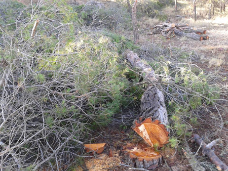 Señala que ayer míercoles 10 de junio comprobaron como una brigada procedía a cortar varios ejemplares indicando que se trataba de tareas preventivas contra incendios.