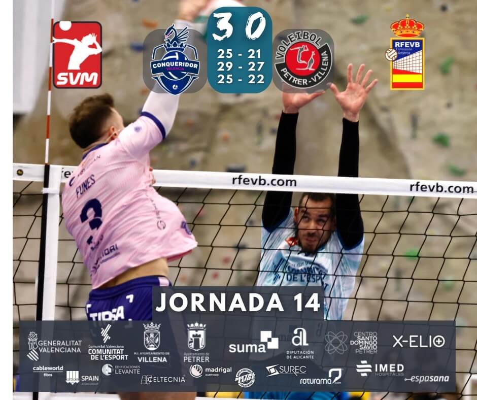 El tercer set para el Villena-Petrer volvió a ser como subir el Everest, una sensación demasiado habitual en estos últimos parciales, en los que habitualmente se suele llegar 2-0 abajo. Aun así hay que reforzar la lucha y actitud de todo el equipo, que sigue trabajando con profesionalidad y dando la cara hasta el final. Se intentó alcanzar a los locales, pero algunos errores al principio de set y un buen nivel de saque del CV Conqueridor, no dejaron que el marcador diera la vuelta y el partido acabó con la tercera manga (25-22).