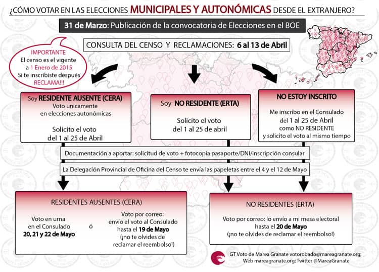 Faltan 5 días hábiles (hasta el 25 de abril) para terminar el plazo de solicitud del voto desde el extranjero. Recuerda, que aparte de un problema de información, desde 2011 los partidos del régimen te obligan a pedir el voto por adelantado, cuando antes te enviaban el voto a tu casa estando inscrita en el consulado. Con el voto rogado, nunca podremos hablar de sufragio universal, nos robaron el derecho.