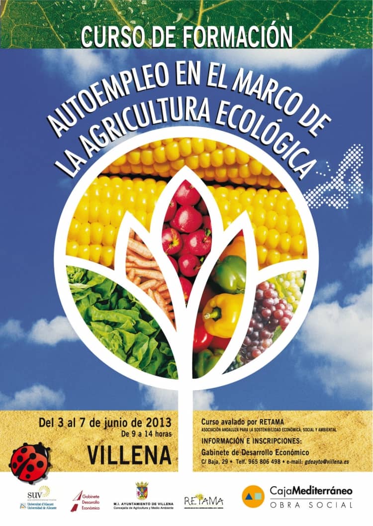 El curso de Autoempleo en el marco de la agricultura ecológica es un curso organizado por la concejalía de Medioambiente con la financiación de la Obra Social Caja Mediterráneo y avalado por RETAMA (Asociación andaluza para la sostenibilidad económica, social y ambiental) que se llevará a cabo en la Sala Polivalente de La Tercia.